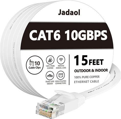 Cat 6 イーサネットケーブル 15フィート、屋外&屋内 10Gbps Cat7ネットワーク対応、フラットインターフェース