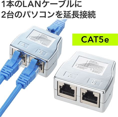 LANケーブル延長コネクタ 2分岐アダプタ 中継 二股 RJ45 CAT5e STP 切り替え 切替 カテ5e カテゴリ5e 配線 ランケーブル