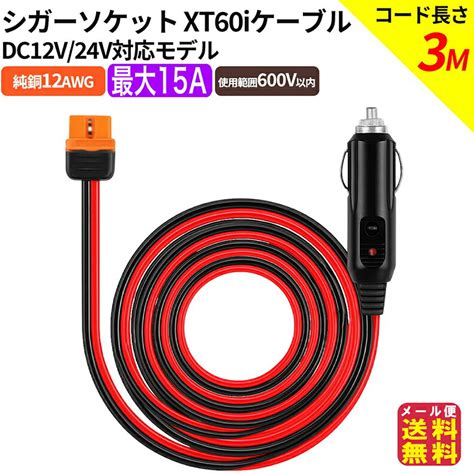 【車載シガーソケット充電ケーブル XT60i to シガーソケット(300cm)】【メール便 送料無料】【ポイント 2倍】xt60i to cigar 12AWG DC12V/24V 15A アダプター 車載機器 ポータブル電源 充電用 接続 変換アダプター コネクタプラグ 3m pk