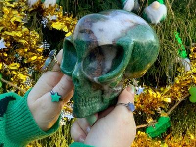 Green Aventurine Crystal Alien Skull Large 3 Lb. 6 Oz. 5" Long Green &