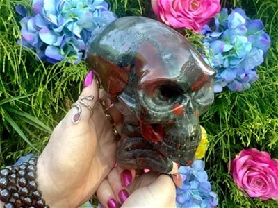 Bloodstone Crystal Alien Skull Large 4 Lb. 9 Oz. 6" Long Colorful